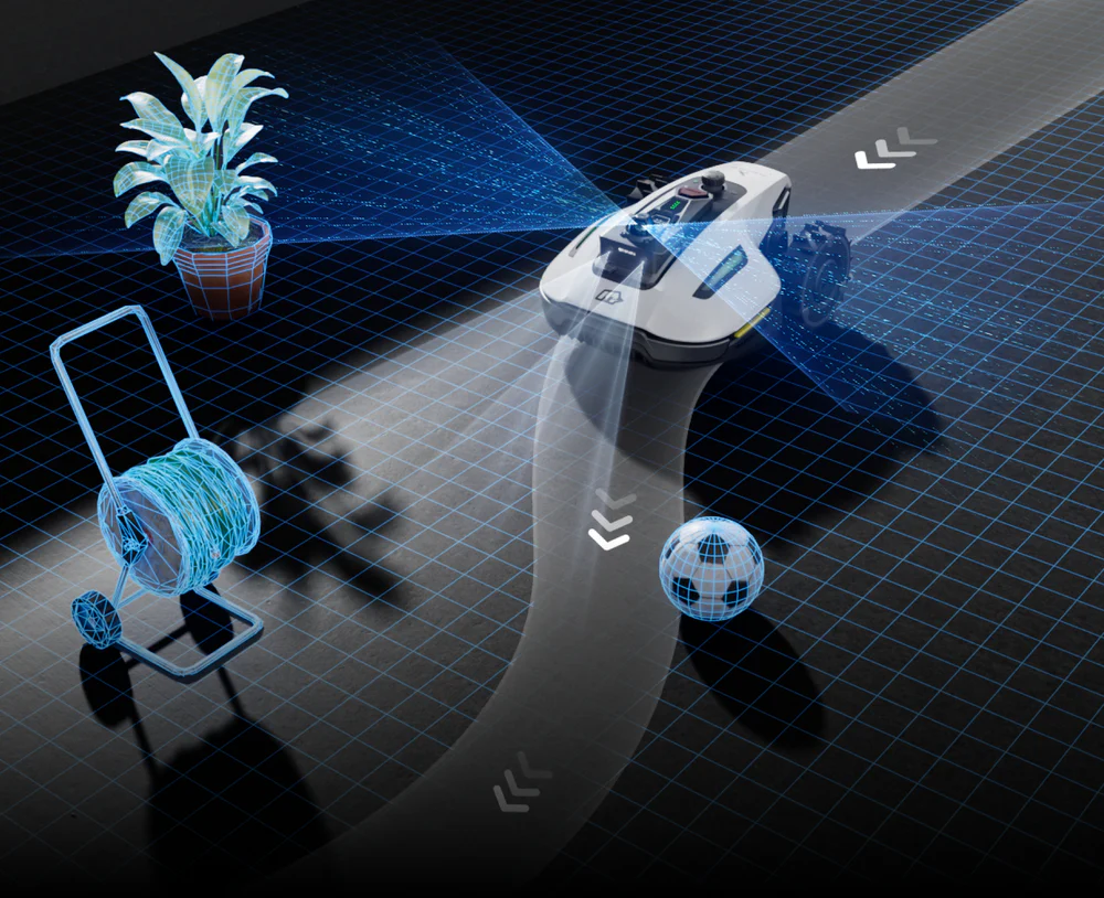 Dzięki zastosowaniu systemu LIDAR oraz dodatkowo Vision Fusion nasz robot może rozpoznawać przeszkody i w sposób inteligenty je omijać. System najlepiej działa w świetle słonecznym.